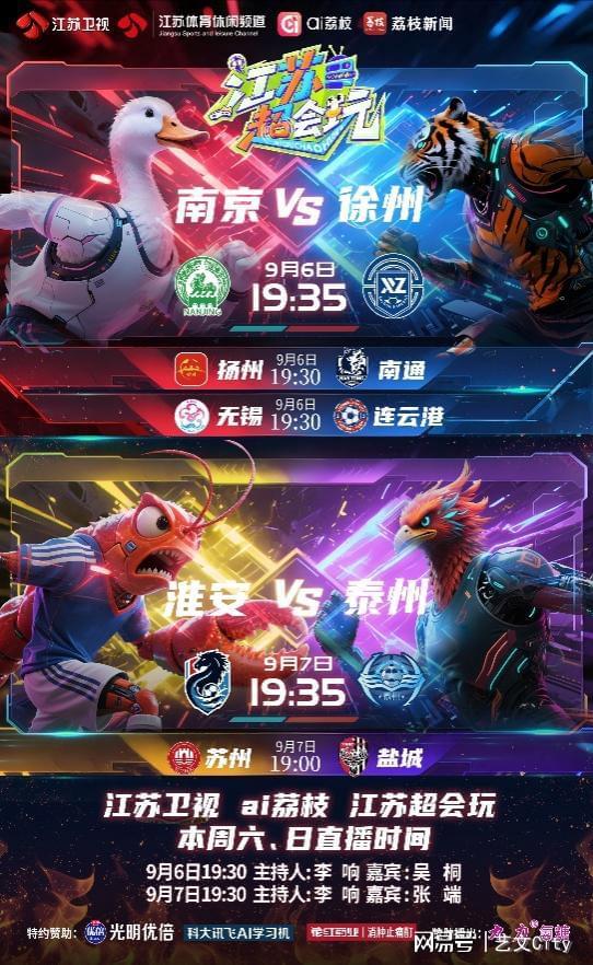 酝酿了半个月的巅峰对决,将在今晚打响!南京队将坐镇南京奥体中心体育场迎接劲敌徐州队的挑战。由江苏卫视、ai荔枝跨屏联动打造的《江苏超会玩》将在19:30对本场比赛进行直播,同时还将小窗直播扬州队VS南通队、无锡队VS连云港队的两场比赛。南京队渴望全取三分进一步稳固积分榜优势,徐州队则希望能翻过南京队这座“大山”,为即将到来的淘汰赛做足准备。江苏卫视主持人李响将搭档足球解说吴桐,和大家一起围观精彩的“榜二”大哥之争。