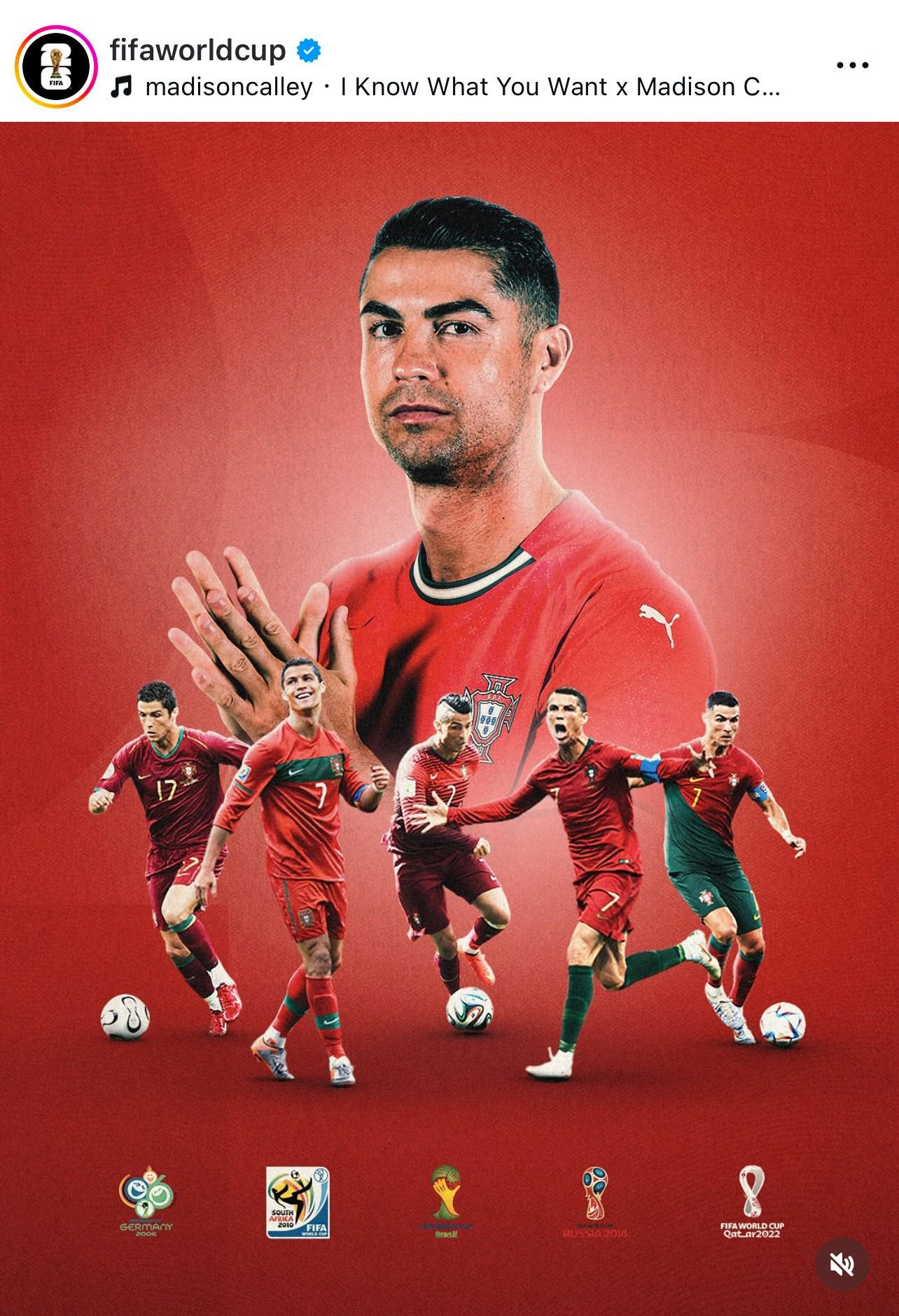 北京时间9月6日,世界杯官方社媒晒出C罗的海报,并配文:“C罗迎来第6次世预赛之旅。”
